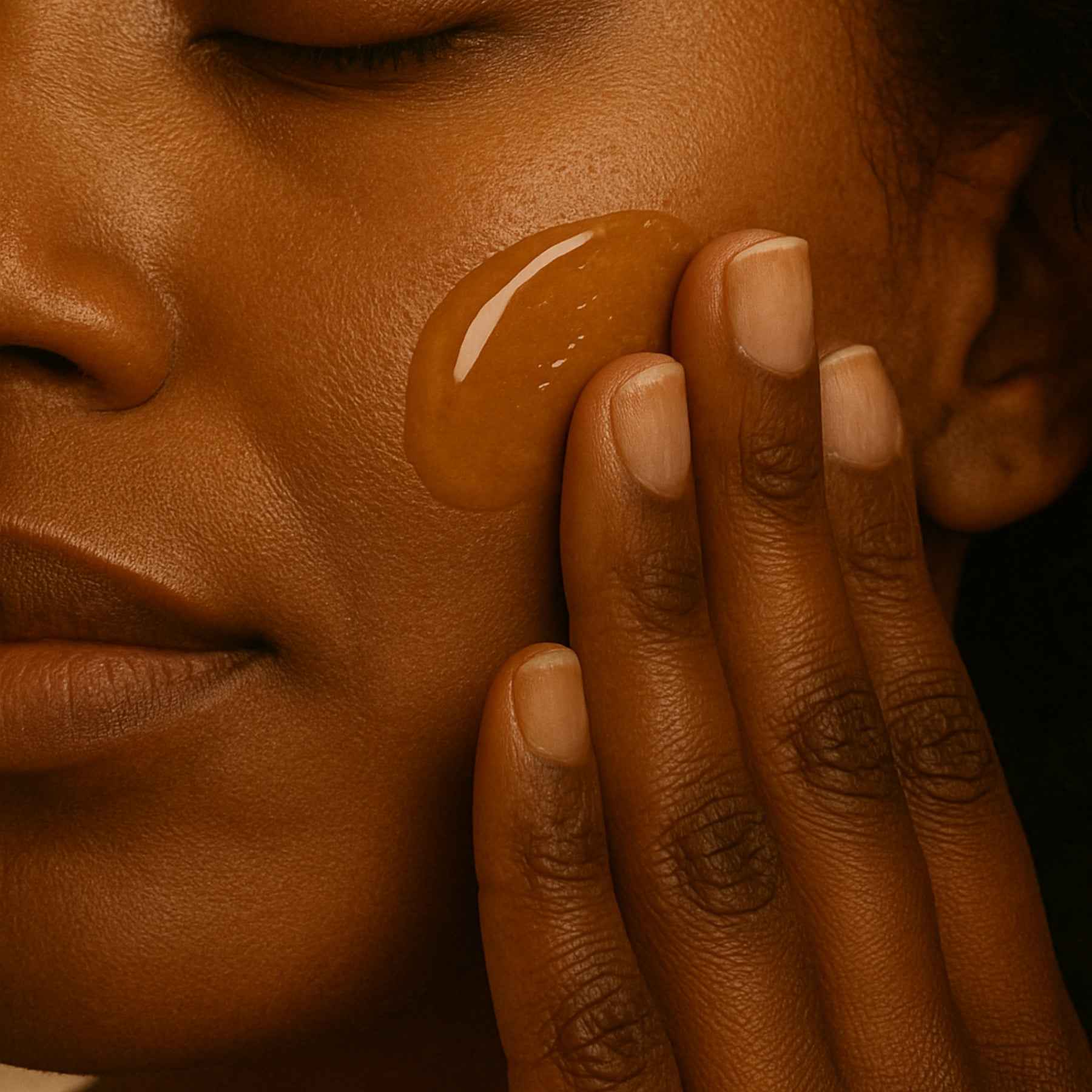- Melanin-rich skin with dark marks or uneven tone